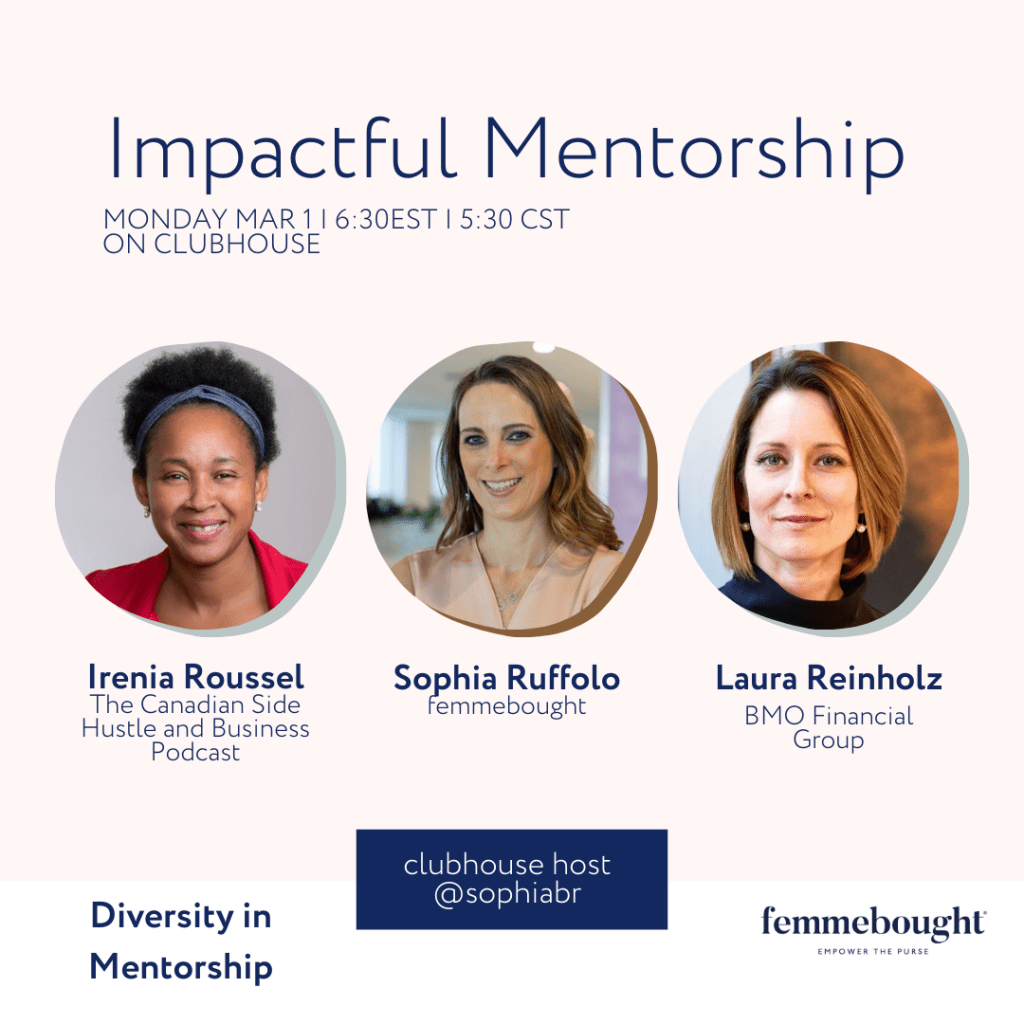 I had the distinct pleasure of participating in my first ever Clubhouse panel discussion, thanks to the lovely invitation I received by Sophia Ruffolo, CEO of Femmebought. I was a bit nervous going on the panel since I did not have an official speaking opportunity since last March, when I participated as master of ceremony for #IWD2020 Fredericton Women Techmakers Conference. I quickly called two of my peers to get their opinion and advice on my approach to this and was able to quickly pull together some rough notes for the evening event. It turned out, I had nothing to be really nervous about because Clubhouse is similar to podcasting – only with podcasting its one-way audio and on this platform I was able to interact with the audience – super cool!
