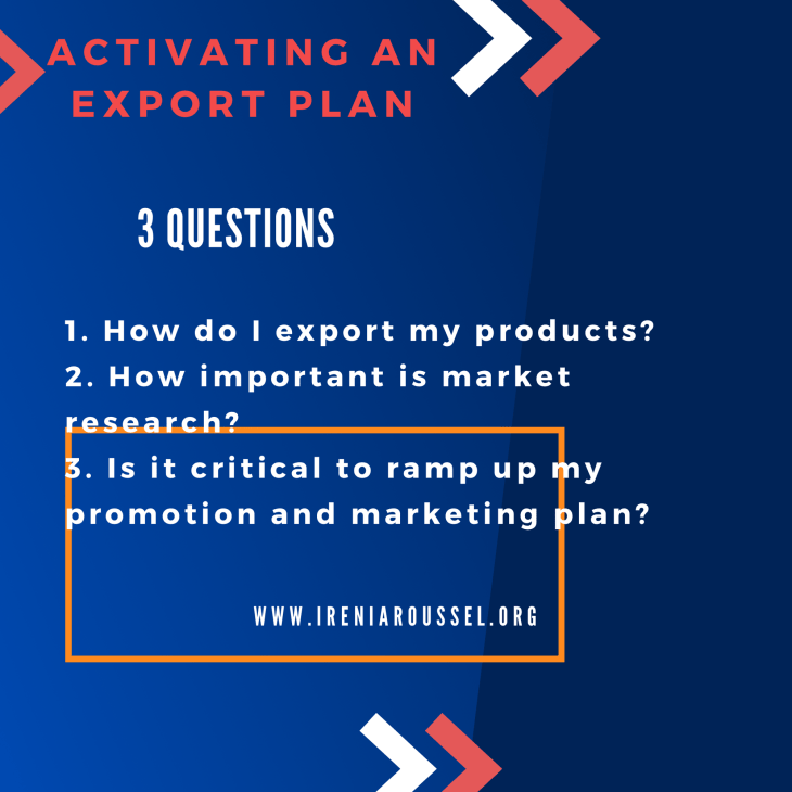 To activate your export plan ensure that you have a solid handle on your balance sheet with a strong cash position; a sound marketing and promotions plan; the human resources to execute on this plan; excellent relationships with your buyers and trusted industry experts; the manufacturing capacity to expand production including having a secure and diversified supply of purchase inputs. Having examined these major business strategy components, you will be more prepared to venture into a new market to take your company to the next level.